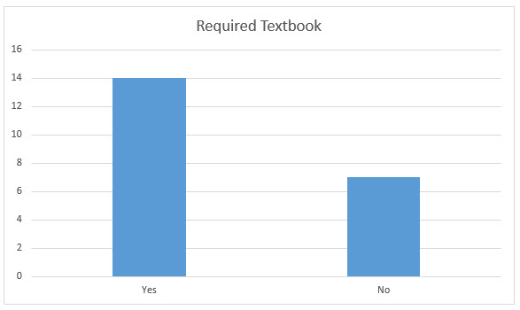 Note: Several who claimed that there is no required textbook stated that it was the instructor's choice, but the institution did not mandate a specific text.