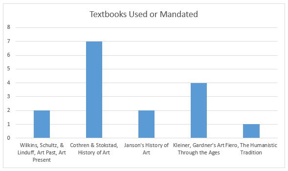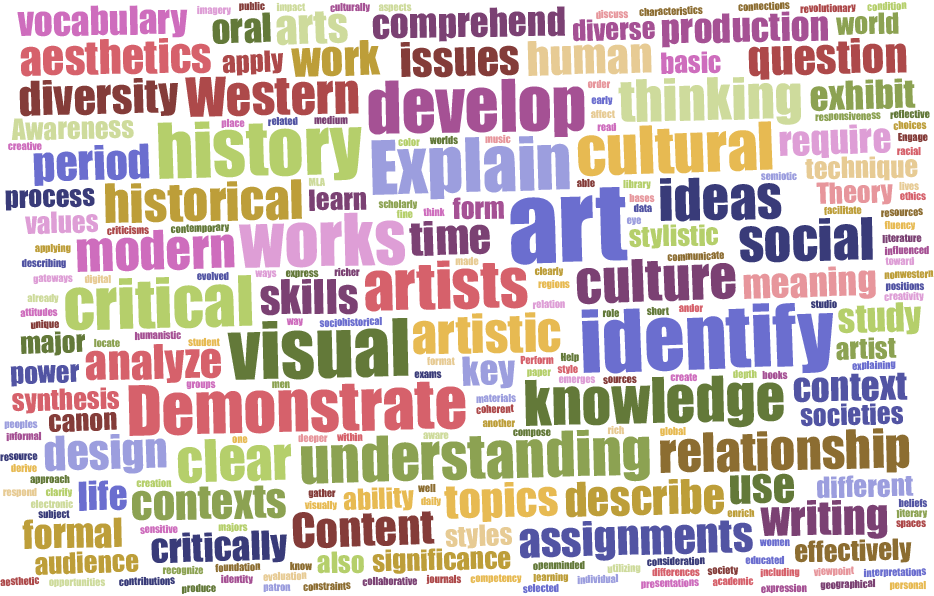 - 4 Courses: 1 Art Appreciation (Non-major); 2 Western Surveys; 1 non-western survey (for art history majors)
