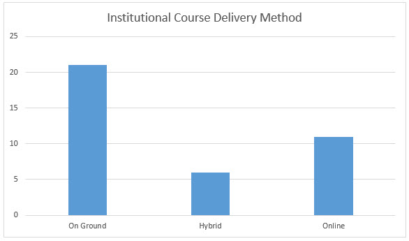 Note: Institutions may have more than one delivery method. Though the research is focused on on-ground delivery, noting the growing balance in delivery methods is important.