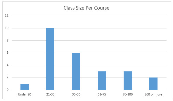 Note: Several participants added specifics regarding class size: On ground ranges from 75-112 versus the online delivery is between 25-30 students per section. Another institution varied from 20 to 70 students per section.